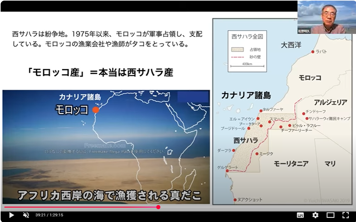 私たちが普段口にするタコのうち、半分はモーリタニアやモロッコなど、西アフリカ沿岸から輸入された冷凍タコです。それが紛争とどのように関係しているのでしょうか。